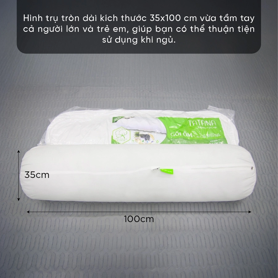 - Gối ôm: Kích thước gối ôm gòn TATANA 35 x 100cm vừa tầm tay cả người lớn và trẻ em, giúp bạn thoải mái sử dụng khi ngủ.