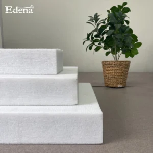 Ruột nệm bông ép cao cấp Edena với công nghệ ép gia nhiệt và làm lạnh đột ngột để tạo nên một mặt phẳng đồng đều và bền chắc. Các lớp bông trắng tinh khiết không pha bất kỳ tạp chất và không sử dụng chất kết dính, đảm bảo an toàn và thân thiện với người sử dụng.