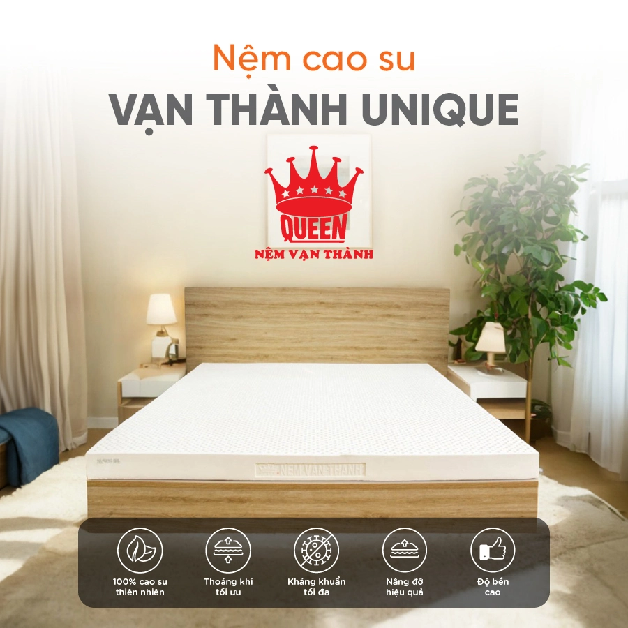 - Nệm cao su thiên nhiên Vạn Thành Unique giúp bạn có thể thay đổi nhiều tư thế ngủ một cách thoải mái nhất, cho phép chuyển động cơ thể tự nhiên mà không làm phiền đến người nằm cạnh.