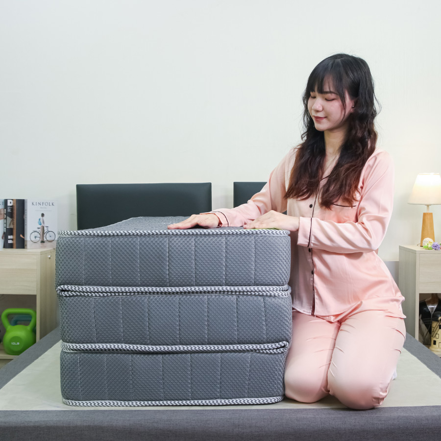 Thiết kế bề mặt nệm dẻo dai với cả 2 mặt vô cùng tiện lợi. Lớp mousse chần bên trong mặt vải dày 16li đem đến độ phồng và êm hoàn hảo.