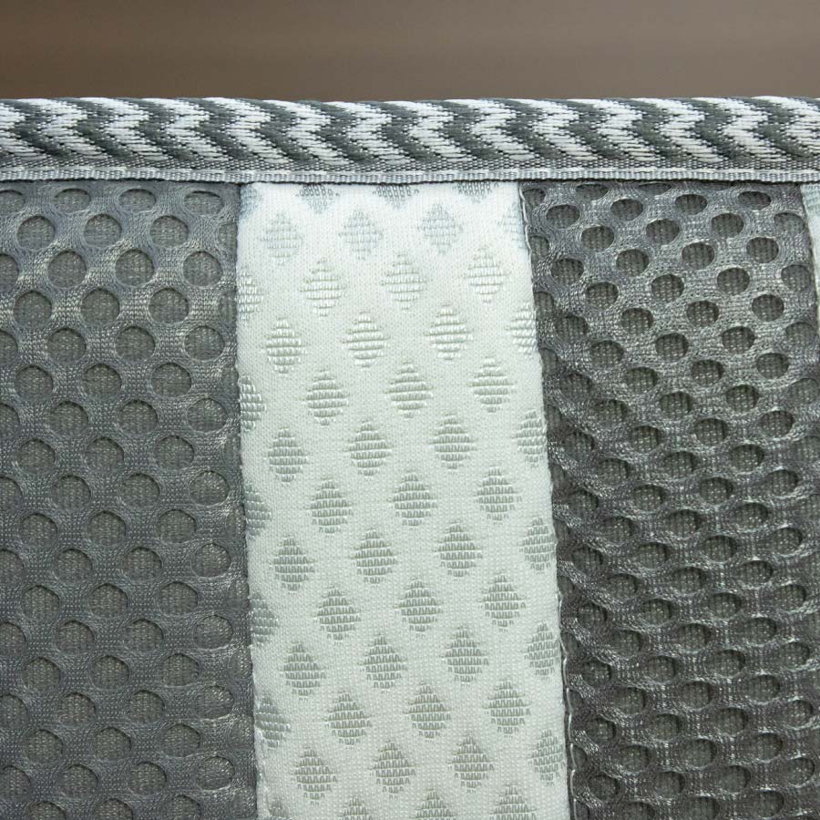 Bên hông nệm được may vải 3D spacer với sắc xám mang lại cảm giác ấm áp vào mùa đông. Bên cạnh đó, thiết kế vải với hàng ngàn lỗ nhỏ lại giúp người nằm cảm thấy được sự thoáng mát vào mùa hạ, khả năng lưu thông không khí trong và ngoài nệm để cơ thể được nghỉ ngơi trong trạng thái thoải mái nhất.