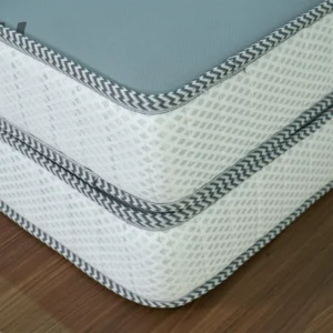 – Bên ngoài là lớp áo nệm được may độc đáo với chất liệu vải gấm thun lạnh ở hai mặt nệm và thành nệm tạo nên nét đẹp thanh thoát cho chiếc nệm.