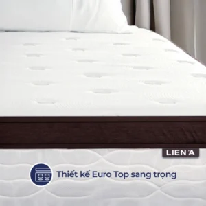 - Thiết kế EURO TOP: Lớp lót nệm hỗ trợ gia tăng giúp mang đến cảm giác êm ái, thoải mái nhưng vẫn đảm bảo vững vàng, chắc chắn