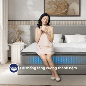 - Lớp nệm đàn hồi cao: Lớp lót nệm giữ cho cột sống ở trạng thái tự nhiên nhất, tạo sự nâng đỡ tối ưu trên toàn bộ cơ thể.