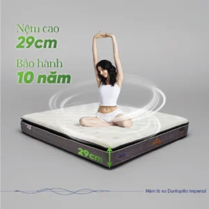 Nệm lò xo Dunlopillo Imperial có độ cao 29cm – sản phẩm độc quyền tại Thế Giới Nệm. Nệm lò xo cao cấp được sản xuất theo tiêu chuẩn Châu Âu. Mang lại cho bạn giấc ngủ ngon và tận hưởng cuộc sống theo cách của riêng mình.