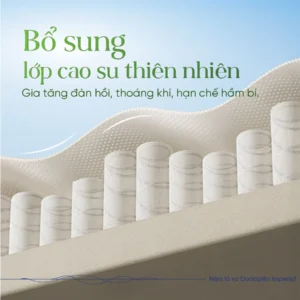 Đặc biệt, mặt nệm có bổ sung lớp cao su thiên nhiên giúp gia tăng sự đàn hồi và hỗ trợ nâng đỡ cơ thể. Cấu trúc hàng ngàn lỗ nhỏ của lớp cao su cho phép nhiệt trong nệm được thoát ra ngoài, tránh hầm bí / nóng lưng, mang đến cảm giác thoáng mát hơn cho người nằm.