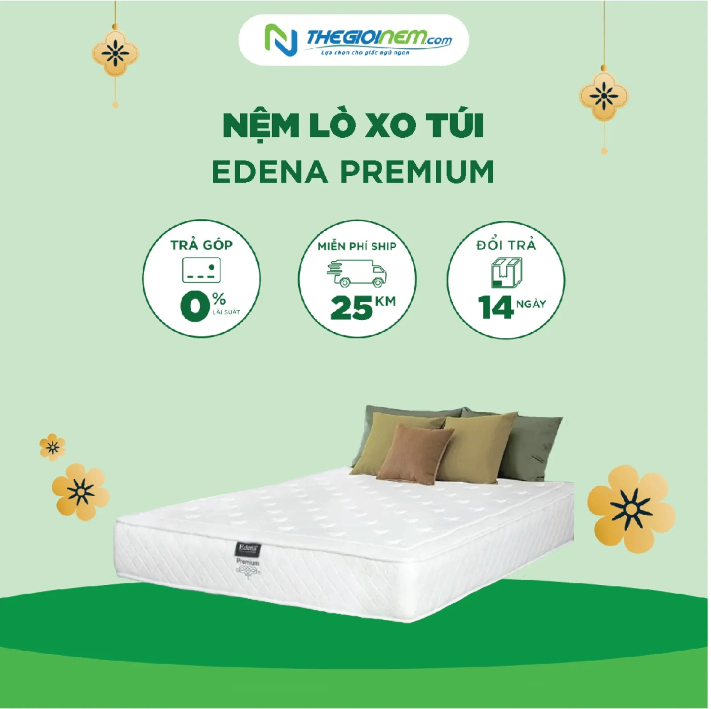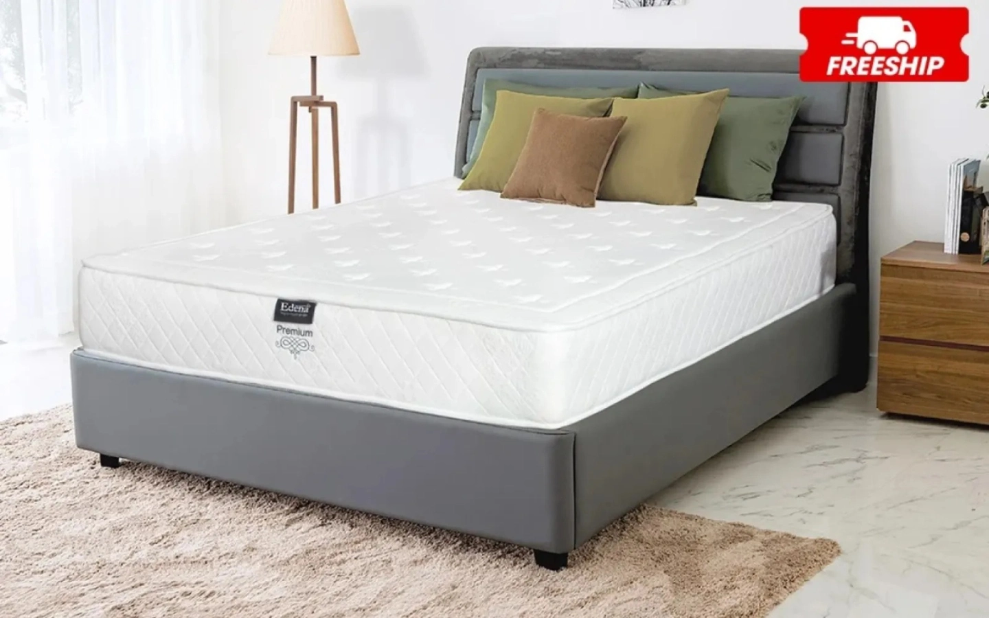 Nệm lò xo Edena Premium với 800 túi độc lập cao cấp Edena – Đỉnh cao của nệm có độ êm ái đàn hồi cao.