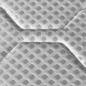 Đặc biệt, nhờ lớp áo nệm vải gấm lạnh bao bọc quanh nệm giúp mang đến sự thông thoáng và thoải mái mỗi khi nằm. Vải có màu trắng, kết hợp hoa văn hình thoi trơn bóng đem lại cảm giác mềm mại nhưng lại không kém phần sang trọng và trang nhã cho sản phẩm.